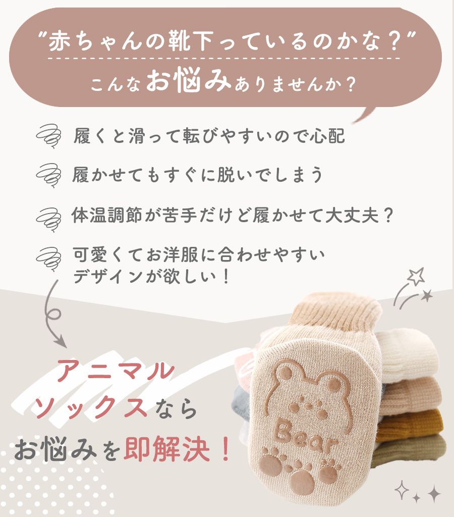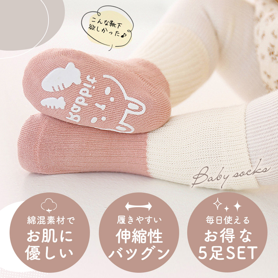 靴下 ベビー 滑り止め キッズ ソックス 5足 セット 福袋 5足セット 綿 コットン アニマル 動物 くつ下 男の子 女の子 ベビーソックス