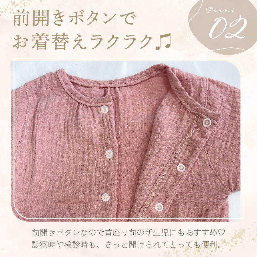 ロンパース 長袖 女の子 男の子 秋 冬 秋冬 ベビー服 ベビー カバーオール ドレスオール 2WAY ガーゼ シンプル 前開き 新生児 退院着