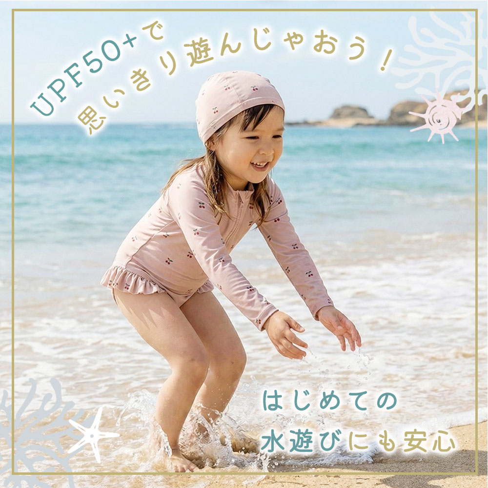 キッズ 水着 女の子 ワンピース ベビー 子供水着 キッズ水着 女の子水着 スイムウェア 前開きファスナー 長袖 キャップ付き 80cm 90cm 100cm 110cm 120cm