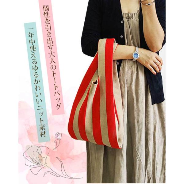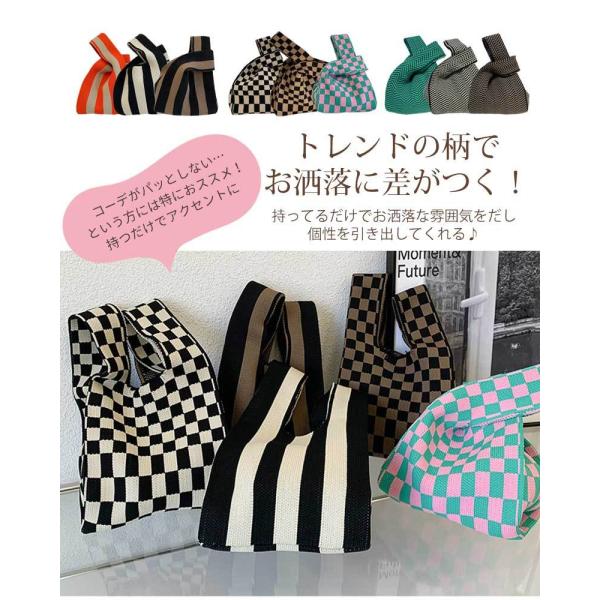 トートバック ミニ 小さめ ニット レディース ミニバッグ サマーニット おしゃれ かわいい トレンド ストライプ ブロックチェック チェック シェブロン 柄
