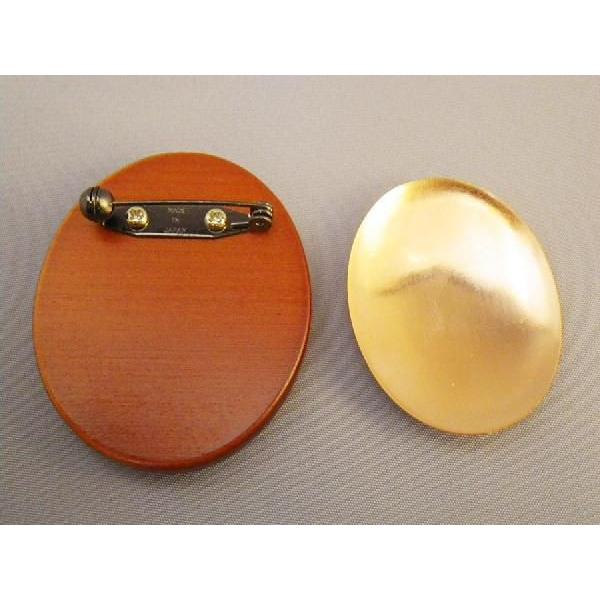 メール便可 木のブローチ台 楕円 小 茶 マリヤオリジナル商品 日本製