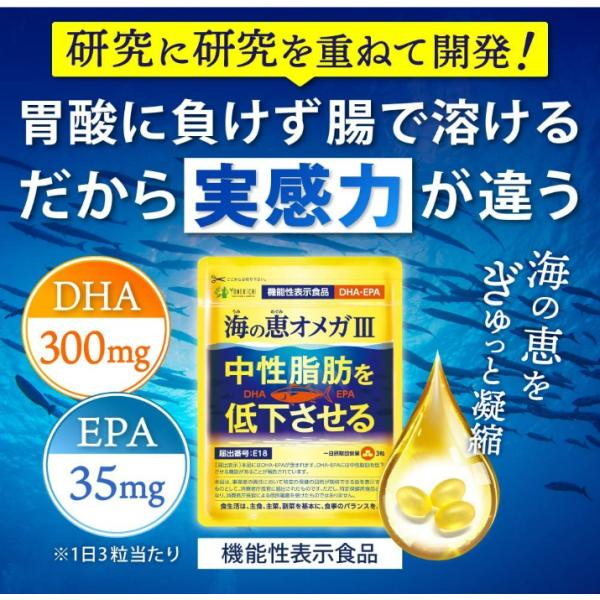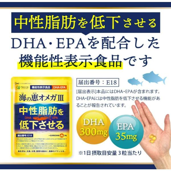 DHA EPA サプリメント オメガ3 中性脂肪を低下させる 海の恵オメガ3 フィッシュオイル ヨネキチ 機能性表示食品 1袋 約1ヶ月分90粒