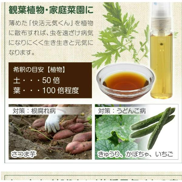 【植物の元気の源】本品を希釈したものを植物に散布することで、根腐れ防止や虫よけとなり、植物が活き活きと成長します。家庭菜園や観葉植物を楽しんでいる方に重宝します。<希釈の目安>土:50倍、葉:100倍を目安に希釈してご使用ください。