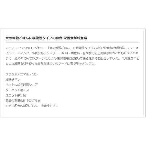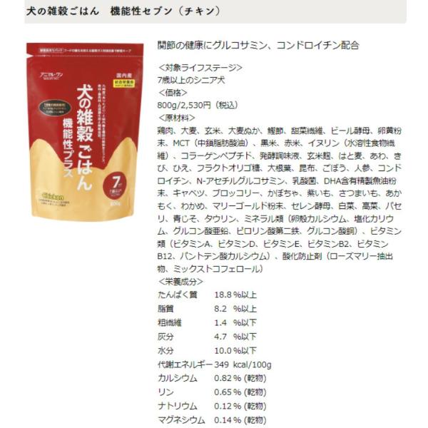 • 犬の雑穀ごはん アニマルワン ドッグフード 機能性セブン チキン 3個セット 7歳以上のシニア犬 800g