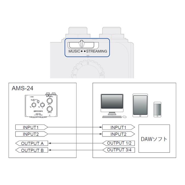 ZOOM ズーム Audio Interface AMS-44 AMS44 AMS-24 AMS24 USB ズーム ハンディー オーディオインターフェイス オーディオインターフェース 配信 Windows Mac Android iPad iOS対応 電池駆動 U-44 U-24 U-22