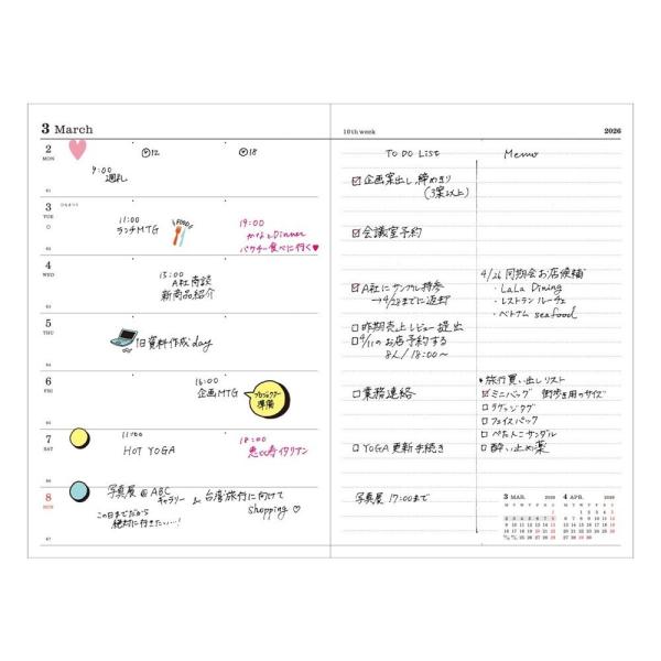 予定とメモのバランスがちょうどいい週間レフトタイプ。