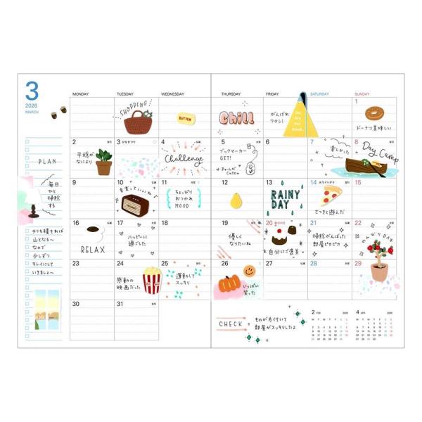 マークス 手帳 2026 スケジュール帳 2026年3月始まり 月間ブロック A5正寸 ストレージイット/ビビッド 方眼ノート付き ユニセックス シンプル