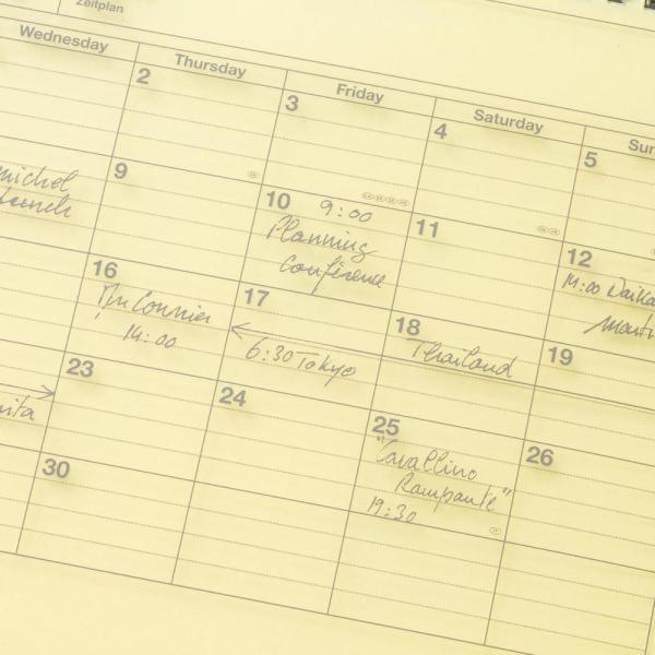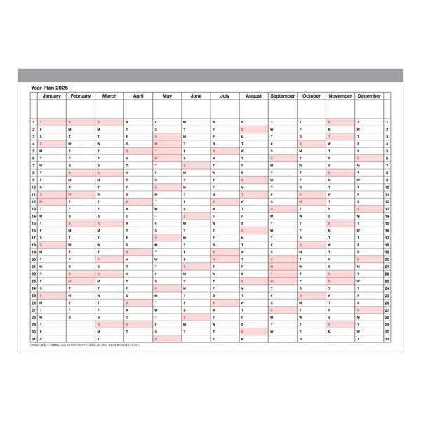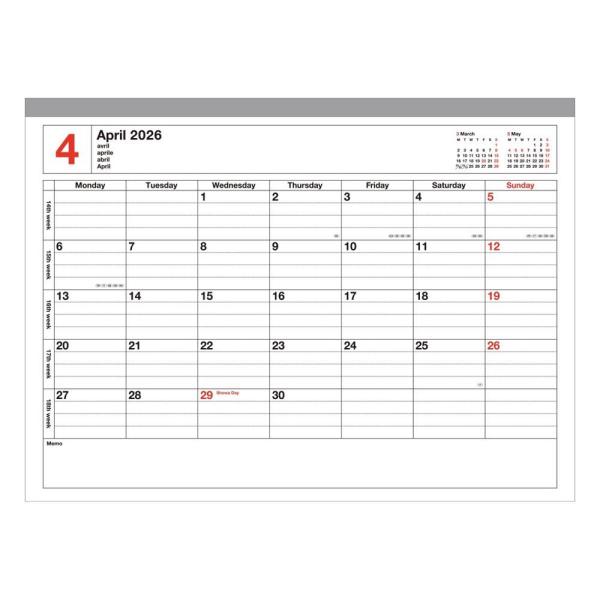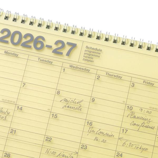 シーンを問わずに愛用できるシンプルなデザインで、カレンダー感覚で使える見やすさと、たっぷり書き込めるメモページ付き。