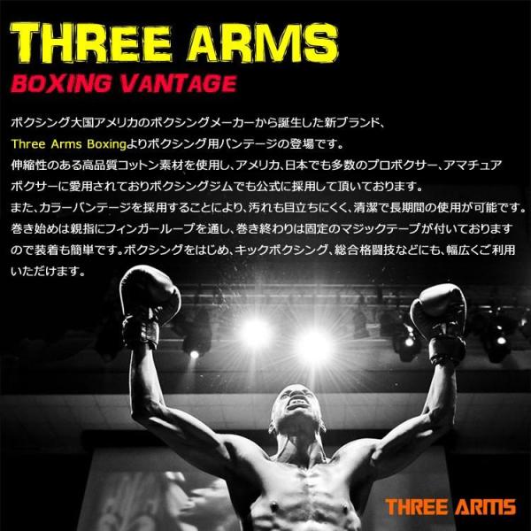 THREE ARMS ボクシングバンテージ 5.5cm×450cm バンテージ ボクシング 伸縮 ボクサー 格闘技 MMA 総合格闘技 テコンドー キックボクシング インナー サポーター