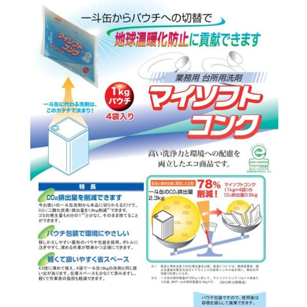 【ニイタカ】業務用食器用洗剤 マイソフトコンク 1Kg ×4袋 業務用 業務用洗剤 台所洗剤 食器洗剤