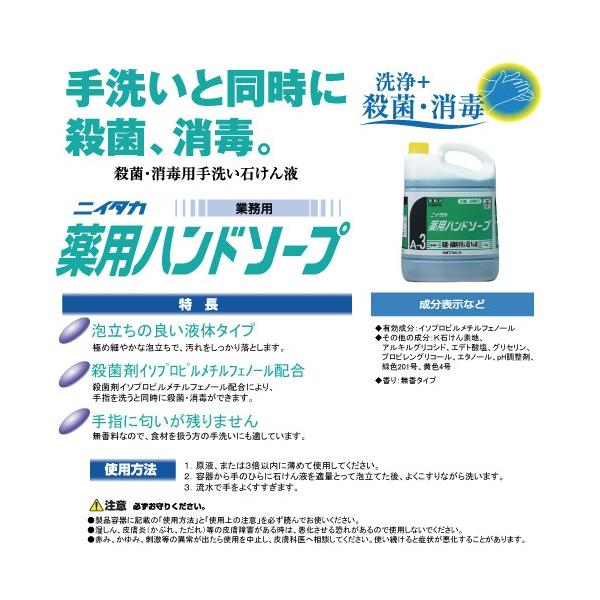 【ニイタカ】薬用ハンドソープ 5Kg×3本 弱アルカリ性/医薬部外品/無香タイプ/業務用/手洗い