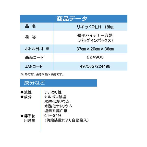 【食器洗浄機用洗剤】リキッドPLH 22Kg 大容量 ニイタカ 塩素系漂白剤配合 業務用洗浄剤 食洗器 硬水対応 各種洗浄機メーカー対応