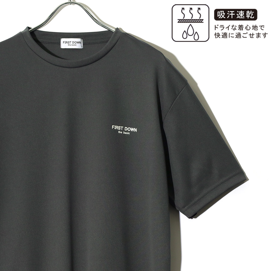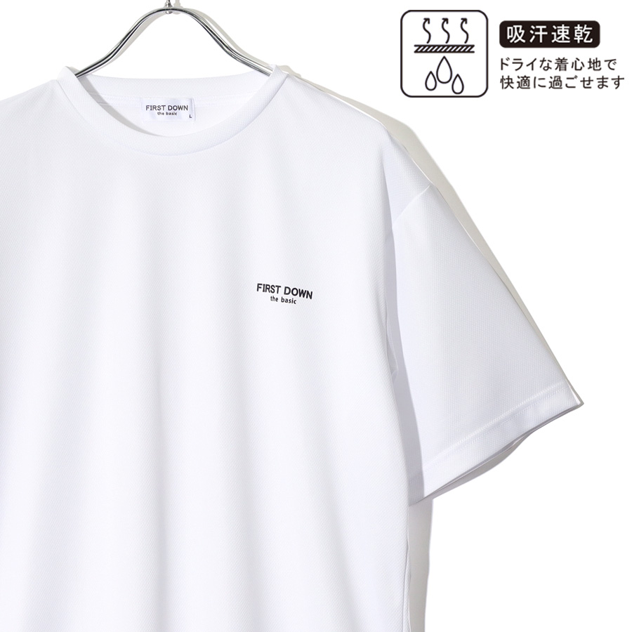 FIRST DOWN ファーストダウン Tシャツ 半袖 メンズ レディース ユニセックス マイクロメッシュ ワンポイント ブランド ロゴクルーネック 吸水速乾 M L LL XL 2L