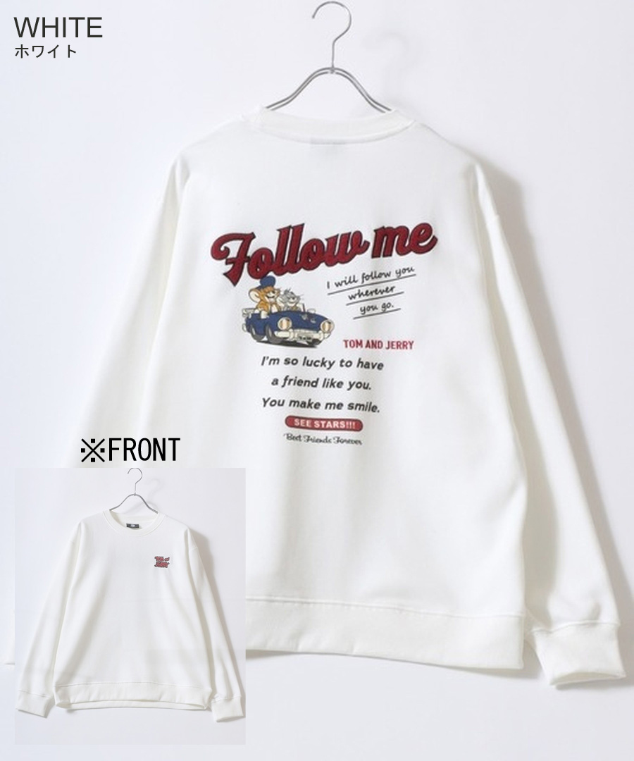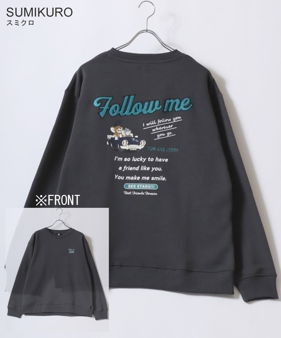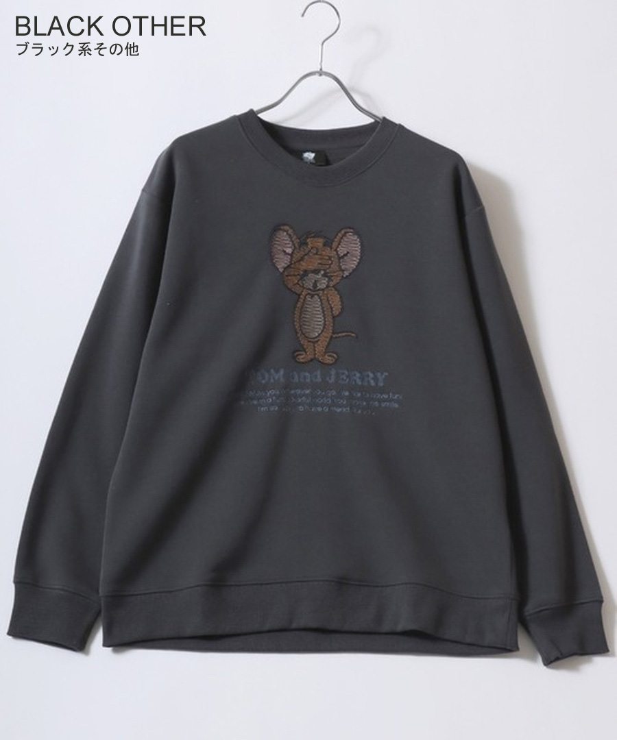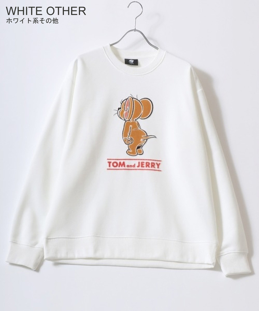 Tom and Jerry トムとジェリー トレーナー メンズ レディース ユニセックス キャラクター 裏起毛 オーバーサイズ フロッキー サテン ステッチ M L LL XL 2L