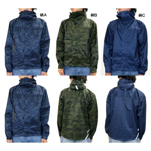 ・左胸 プリント 後身右 フード リフレクターテープ ・袖 口ゴム+ベルクロ留め ・迷彩 、デニム風プリント