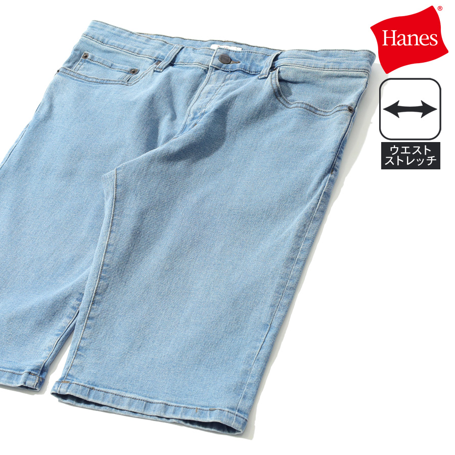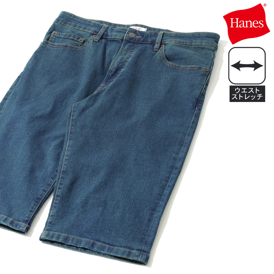 Hanes ヘインズ デニム ハーフパンツ メンズ レディース ユニセックス ウエスト ストレッチ 無地 ブランド 半 ズボン ボトム ボトムス ジーンズ S M L LL XL 2L