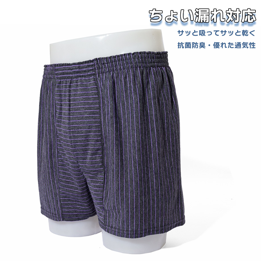 MORESCE モレスキュー 尿漏れ 頻尿 ちょい漏れ対策 トランクス メンズ 先染 ストライプ ニットトランクス インナー 前開き 1P 単品 立体サポーター M L LL XL 2L