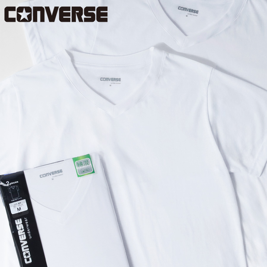 CONVERSE コンバース 2枚組 2P Vネック Tシャツ メンズ レディース ユニセックス 無地 綿混 シンプル ベーシック アンダーウェア インナー 肌着 M L LL XL 2L