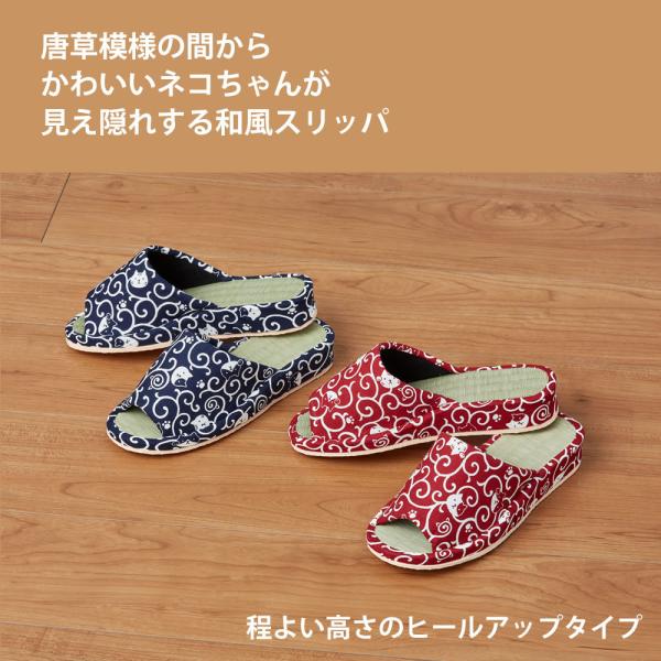 い草ヒールアップスリッパ からくさネコ1足 室内スリッパ イグサ イ草 いぐさ 天然 畳 たたみ ルームシューズ 夏