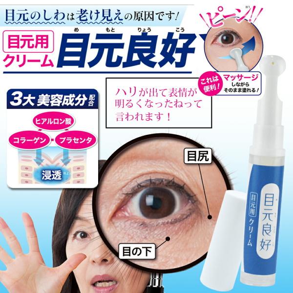 メーカー公式 目元良好 10g 目元 目の下 シワ カラスの足跡 目尻 アイケア メンズ ハリ 保湿 クリーム 男女兼用 日本製 国産 小ジワ マッサージ クマ たるみ ナイアシンアミド コラーゲン ヒアルロン酸 乾燥 悩み ふっくら うるおい 持ち運び 敬老の日