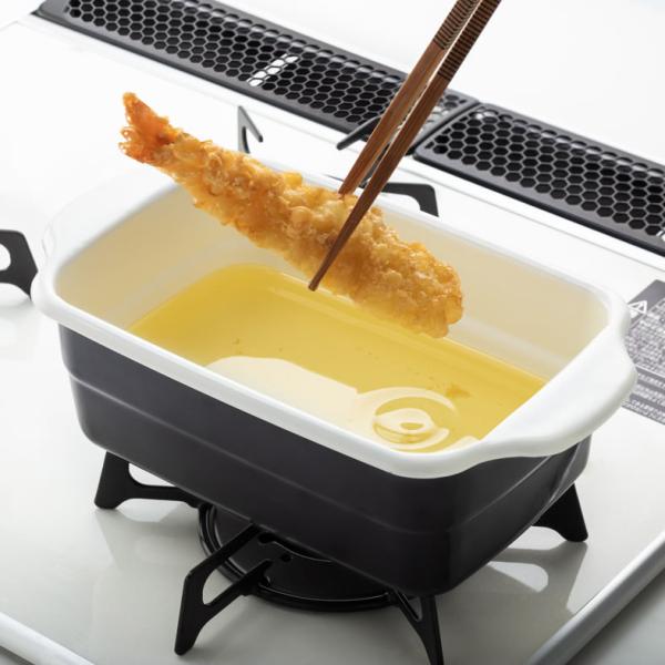 コンパクトながら、長い食材も調理しやすいスリムな角型天ぷら鍋