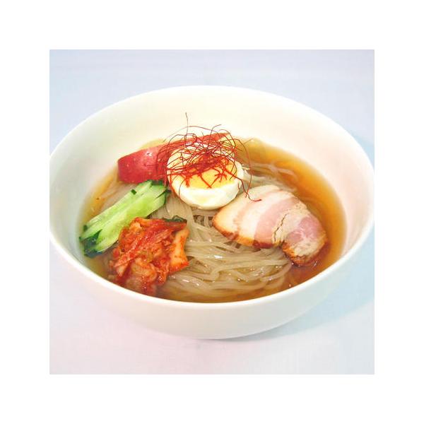 独自の製法により「つるつる」「しこしこ」とした食感が味わえる冷麺。そば粉の風味が効いた冷麺。色は白味がかった灰色の麺。温麺やビビン麺としてもお使い頂けます。