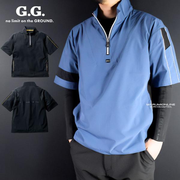 春夏 作業着 作業服 おしゃれ かっこいい 半袖 ハーフジップ シャツ 接触冷感 ストレッチ 軽量 メッシュ Tシャツ 桑和 G.G 0375-64