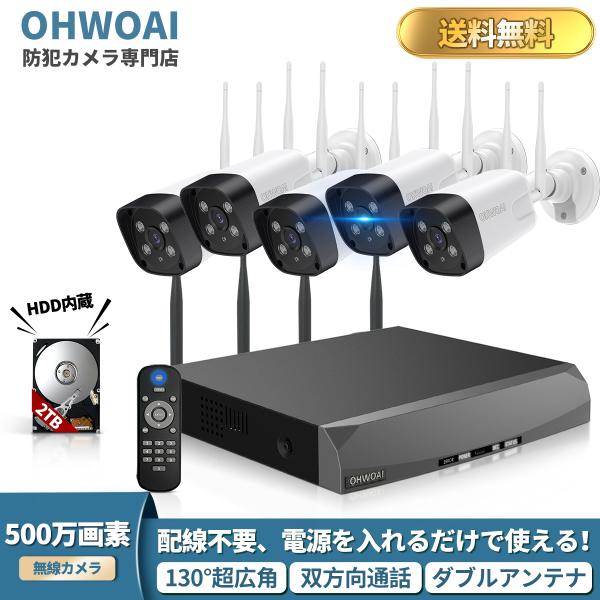 防犯カメラ 屋外 wifi 家庭用 セット ワイヤレス 防犯カメラ 500万画素 防犯カメラセット 5台 監視カメラ 爆買 屋内 無線カメラ 録画機セット 増設可能