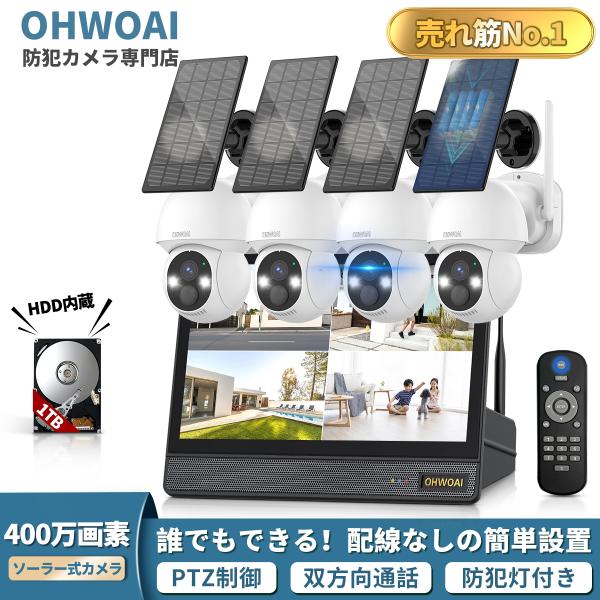 防犯カメラ ソーラー wifi 防犯カメラセット 屋外 家庭用 400万画素 ワイヤレス 防犯カメラ モニター付き セット 爆買 工事不要 電源不要 太陽光発電 監視カメラ