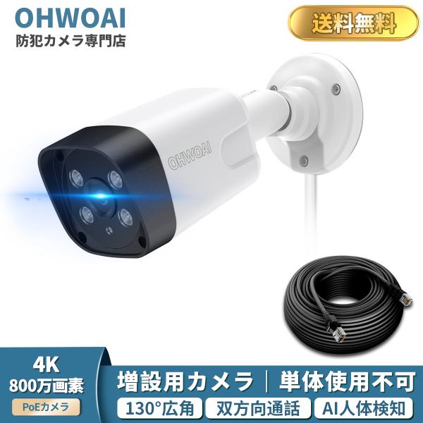 防犯カメラ 増設用カメラ poe防犯カメラ 4k 800万画素 監視カメラ 屋内 屋外 家庭用 赤外線 暗視機能 簡単設置 有線 通話 モーション検知 単体使用不可