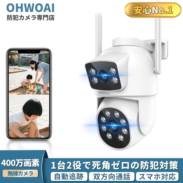 期間限定特典) 防犯カメラ 400万画素 ワイヤレス 屋内屋外 工事不要 防犯カメラ ダブルレンズ 屋外 防犯カメラ 屋外 家庭用 監視カメラ 爆買