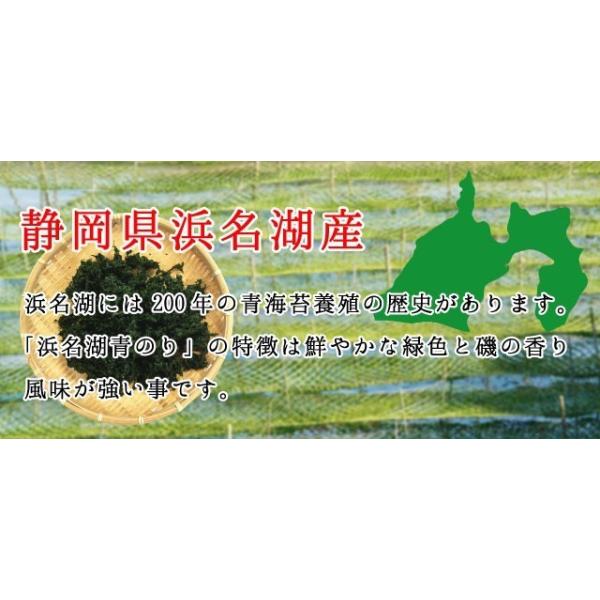 「浜名湖青のり」の特徴は鮮やかな緑色と磯の香り風味が強い事です。