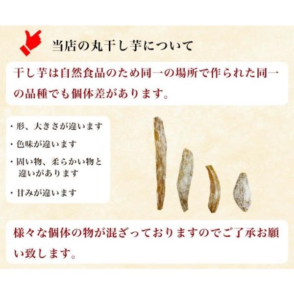 丸干し芋はさつまいもをスライスせずに、そのまま干し芋にした物となります。