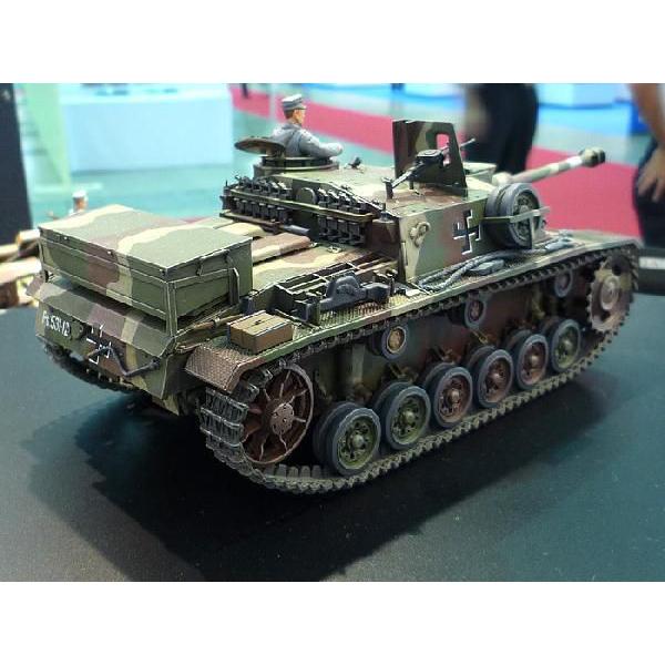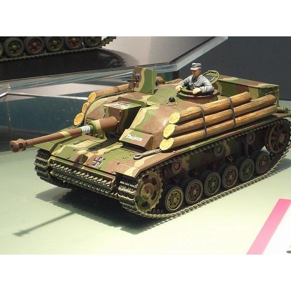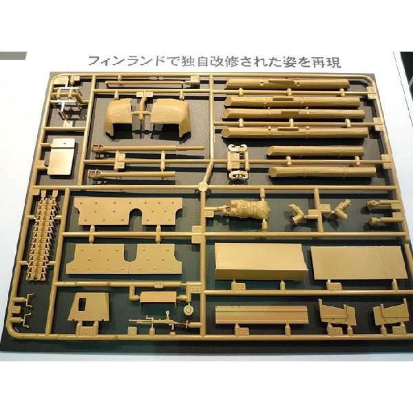 ■第二次大戦におけるフィンランドとソ連の戦いの末期、フィンランド軍の主力となって祖国を守り抜いたIII号突撃砲G型をモデル化。ドイツから輸入されフィンランドで改修された姿を実感豊かに再現。車体後部に雑具箱を追加して予備転輪を戦闘室側面に移動させた前期改修型と、防御力を高めるため丸太やコンクリートブロックを追加装着した後期改修型が選べます。
