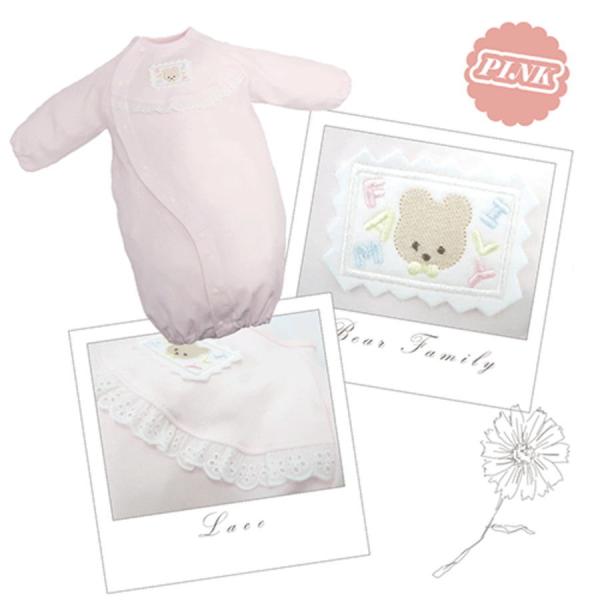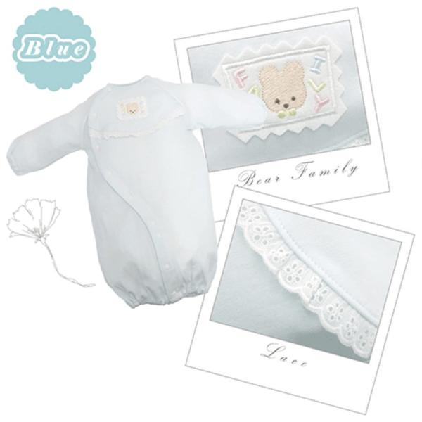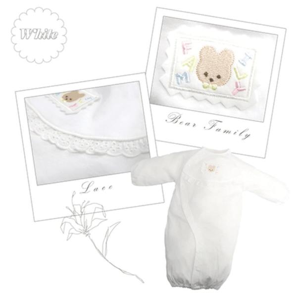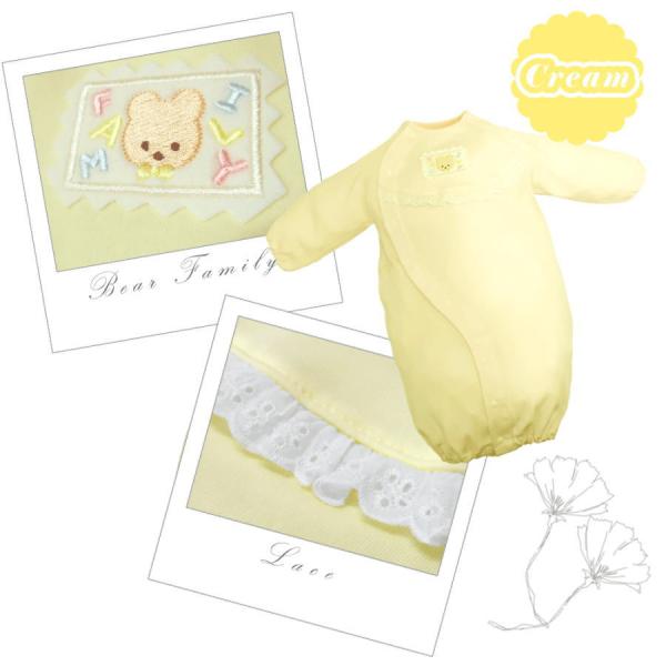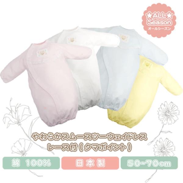 やわらか ツーウェイドレス (レース &クマさん) ロンパース 長袖 日本製 綿100 50~70cm 新生児 赤ちゃん ベビー 服 退院 出産準備