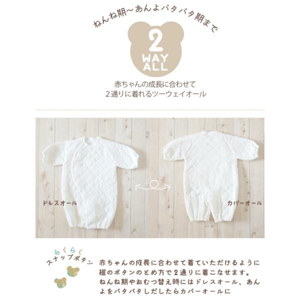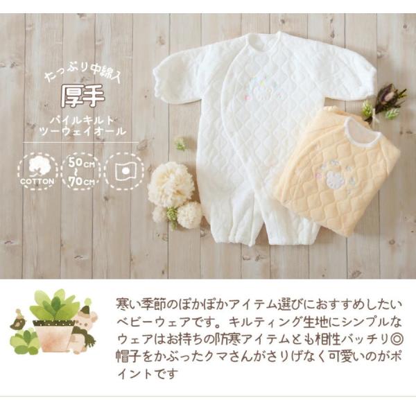 ベビー 服 厚手 パイルキルト 2WAYオール クマさんアップリケ 長袖 中綿 日本製 50〜70 綿100 新生児 赤ちゃん 秋冬 春 出産 退院