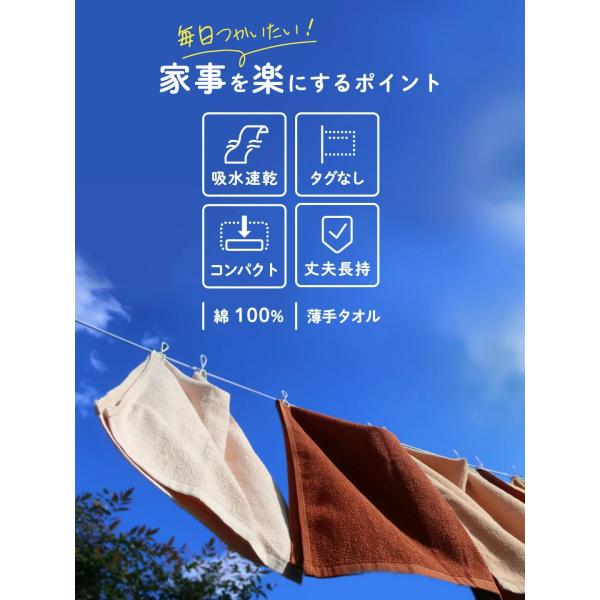 薄手なのに、吸水性もよくパイル抜けや、色落ちにも強く、乾燥機もOKです!