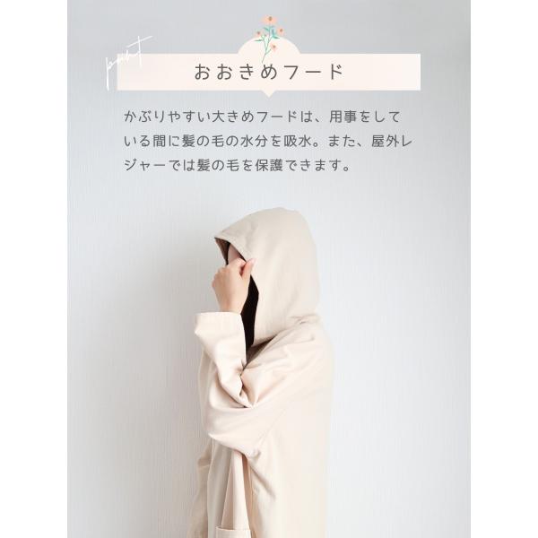 かぶりやすいフードは、お風呂上りに用事をしている間に髪の毛の水分を吸収。