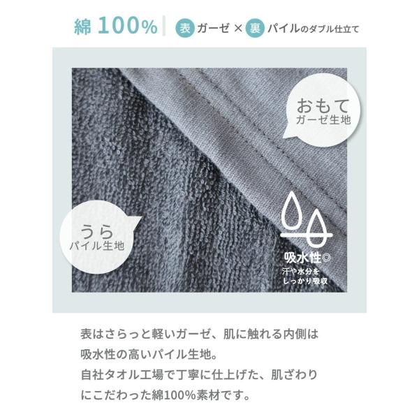 表面はさらっと、肌に触れる部分は吸水性と肌触りが良いパイル地。