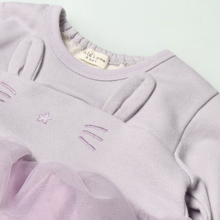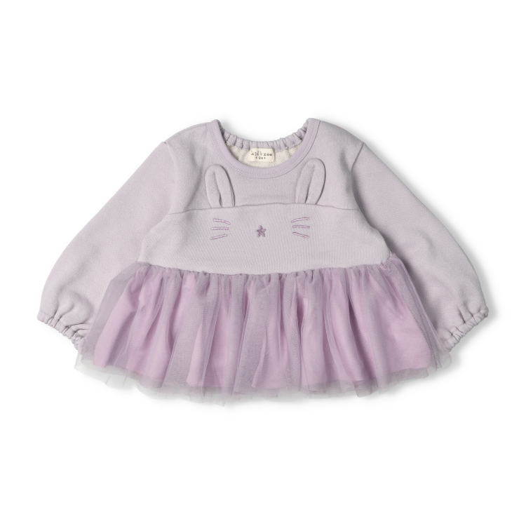 再値下げ 25秋冬SALE50%OFF価格 子供服 kid´s zoo (キッズズー) ねこ・うさぎデザイン裾チュール裏毛トレーナー・スウェット 80cm,90cm W64601