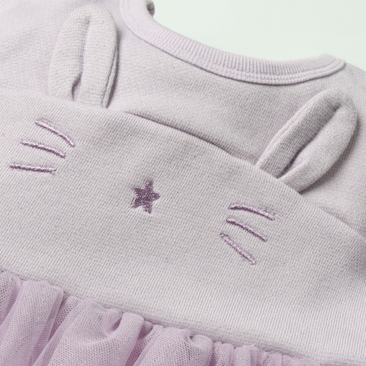 ブラックはねこ、ラベンダーはうさぎの耳付きデザイン。 裾にはラメチュールをふんわり重ねてガーリーに。 女の子らしくて可愛いアイテム。 【アイテム】ロングスリーブ 長袖 プレゼント ギフト プルオーバー 赤ちゃん服 ベビー服 贈り物 トップス 無地 シンプル ガーリー カジュアル お洒落 オシャレ かわいい 可愛い 普段着 デイリーウェア お出かけ着 子ども こども 女児 女の子 ガールズ キッズ ベビーサイズ 幼稚園 保育園通園 2025年秋冬物新作 丸高衣料 ブラック 黒色 ラベンダー 薄紫色 動物 アニマル ネコ ウサギ キッズズー