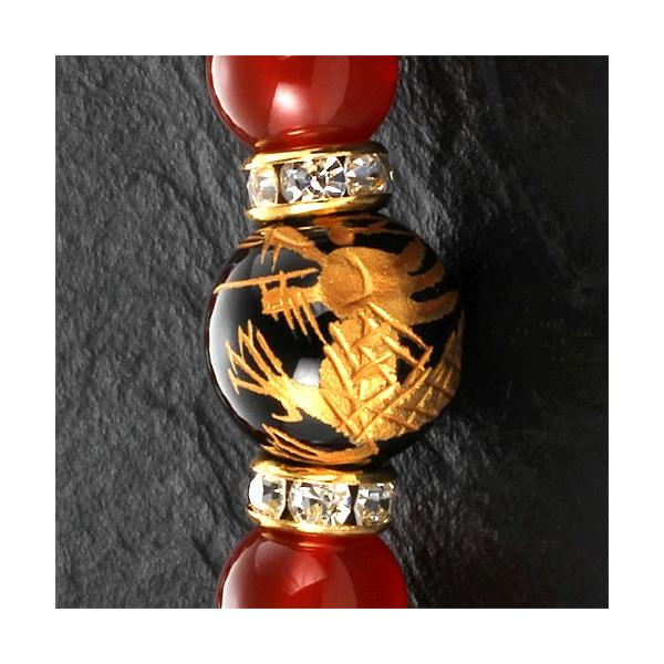 白水晶2個(12mm珠 梵字刻印)、2個(8mm珠 梵字刻印)、赤メノウ11個(10mm珠)、オニキス1個(14mm珠 龍刻印)、ロンデル16個(8×4