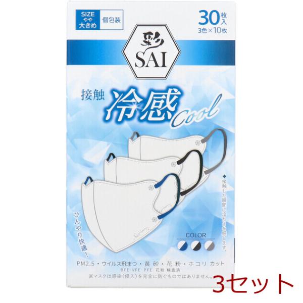 マスク 彩 SAI 立体冷感カラーマスク 個包装 やや大きめサイズ 30枚入 3色×10枚入 3セット