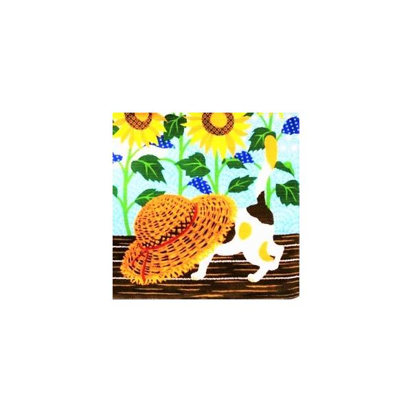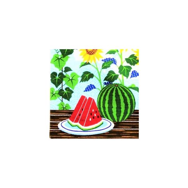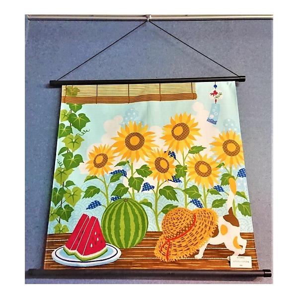 綿 小風呂敷(約50cm巾) タペストリー 風呂敷 ふろしき 四季 季節 四季彩布 和風 インテリア 飾り ディスプレイ 壁掛け 掛軸 さとうひろみ 8月 シャンタン ひまわり スイカ 夏