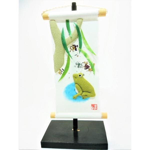 タペストリー 和紙 コンパクト ちりめん 小さい かえる カエル 蛙 / 旬のつづり 柳に蛙 / 玄関 受付 おしゃれ 飾り 置物 紙すき 手作り ミニ 人気