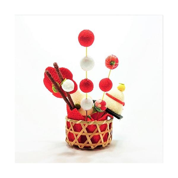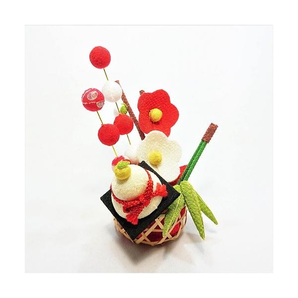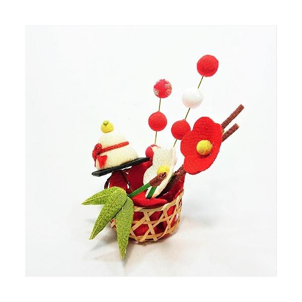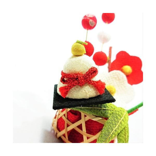 お正月飾り 置物 ちりめん コンパクト 小さい / 迎春初梅飾り / 手作り 鏡餅 縮緬 かわいい 正月 飾り おしゃれ