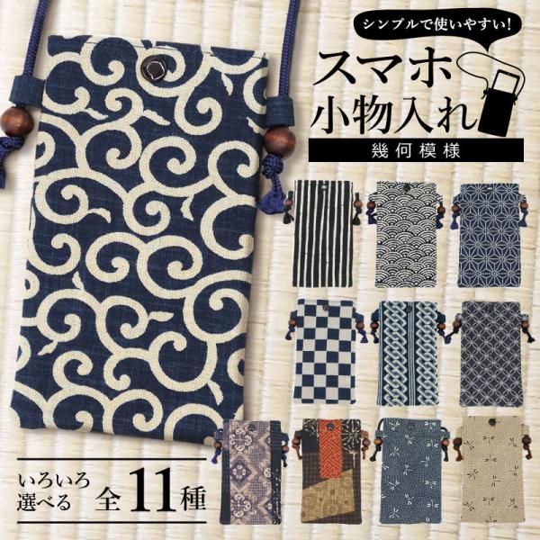 スマホポーチ スマホショルダー 肩掛け/スマホ小物入 幾何模様 和柄 11種/スマホポシェット レディース メンズ ギフト 日本製 和雑貨