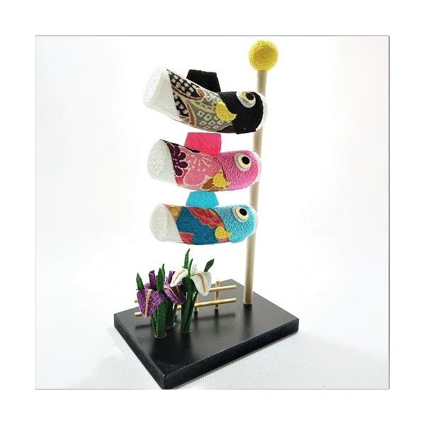 ちりめんで作られた鯉のぼりと菖蒲で端午の節句の情景を表しています。