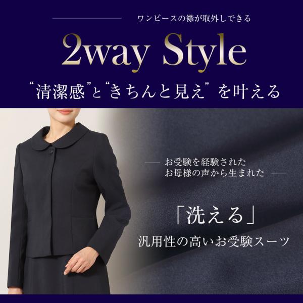 2WAY 洗える お受験スーツ 襟取り外し可能 お受験 スーツ ワンピース ジャケット 紺 ネイビー 面接 試験 入学式 卒業式 ママ レディース 学校行事 len-0823