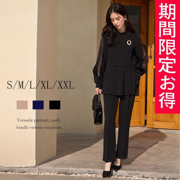 入学式 卒業式 セットアップ レディース ペプラム パンツ セレモニースーツ レース 母親 結婚式 七五三 フォーマル 大きいサイズ 体型カバー おしゃれ